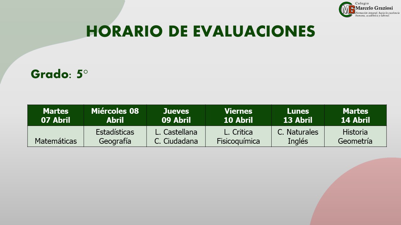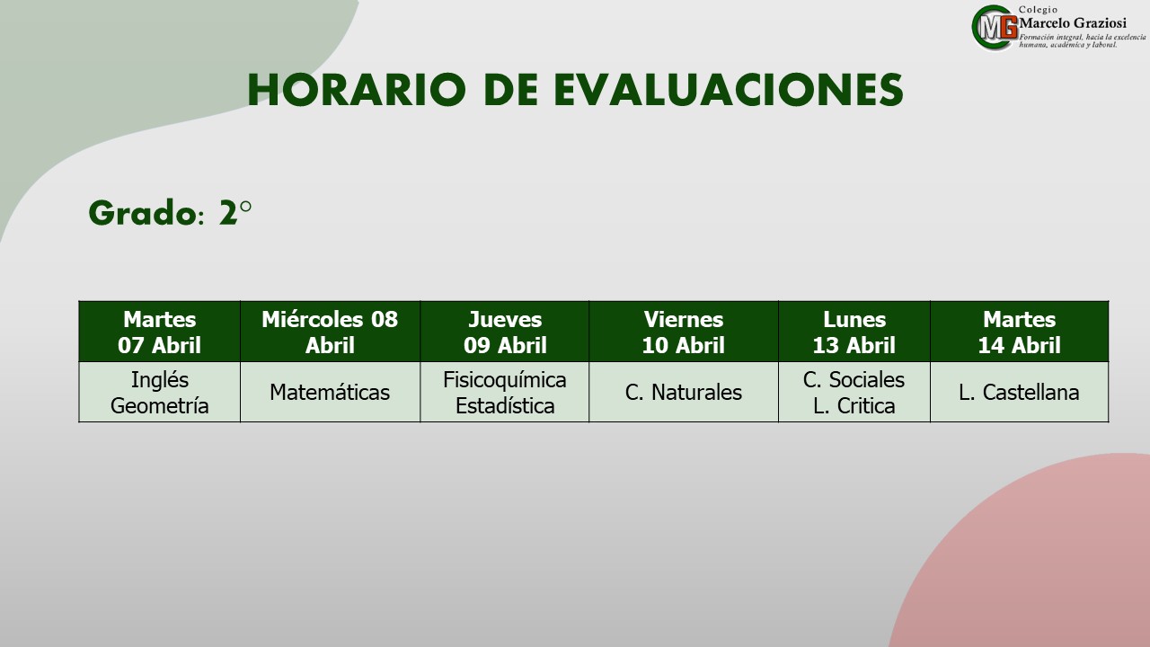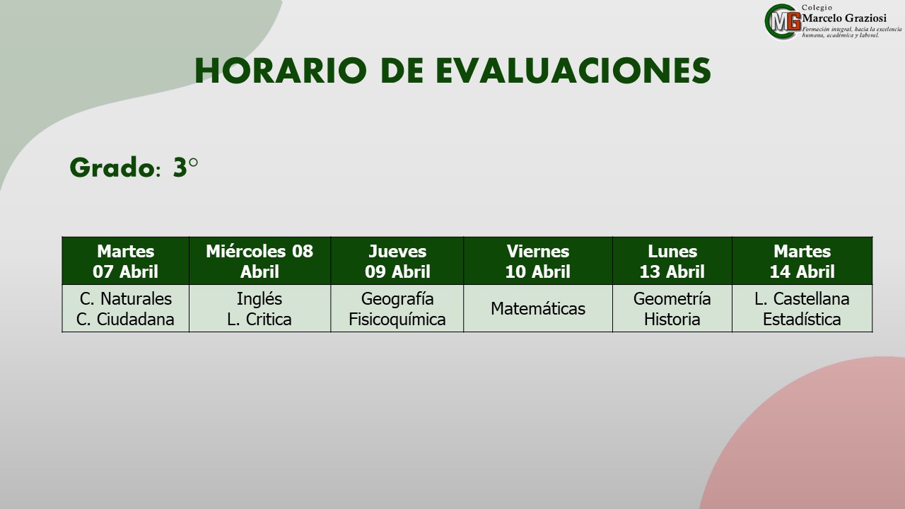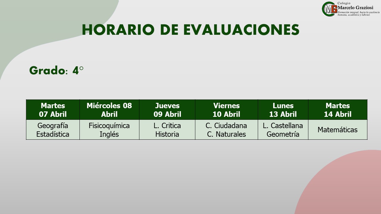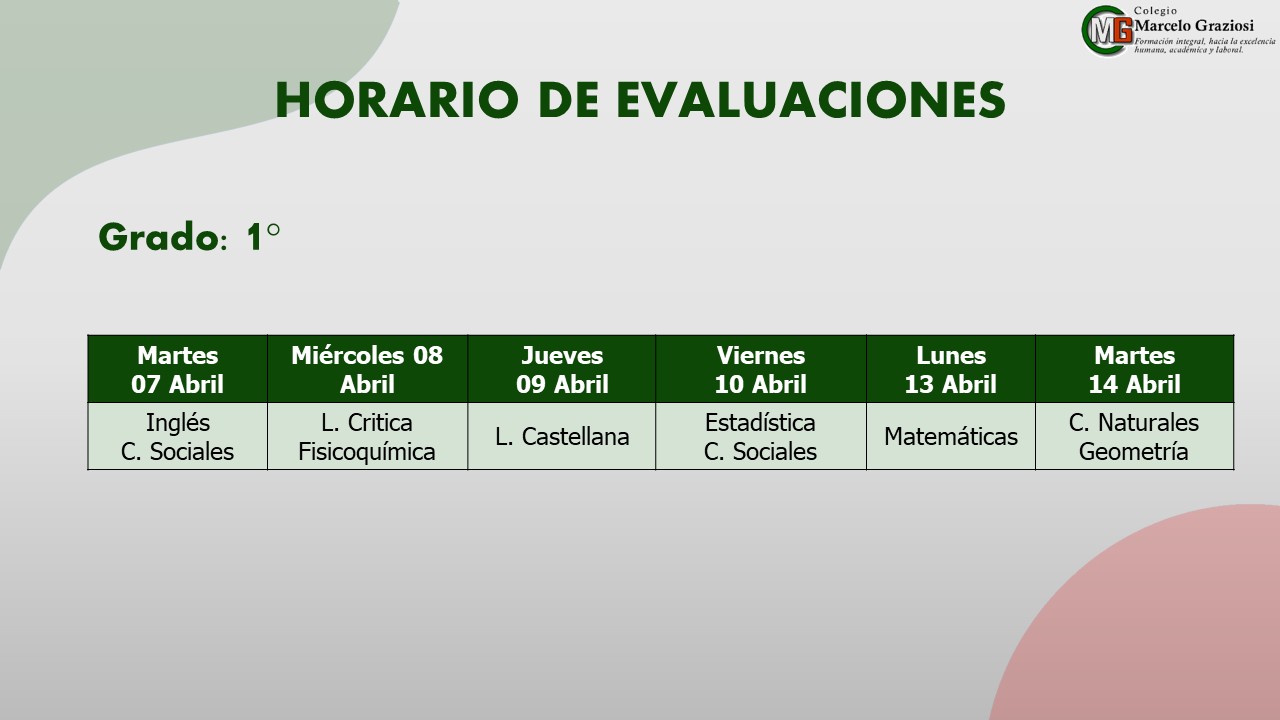 Encuentre aqui los horarios de evaluaciones segun su grado para el primer periodo del 2026.