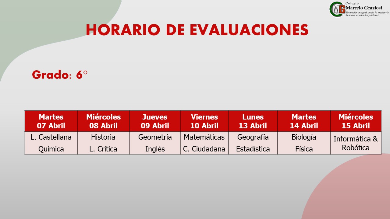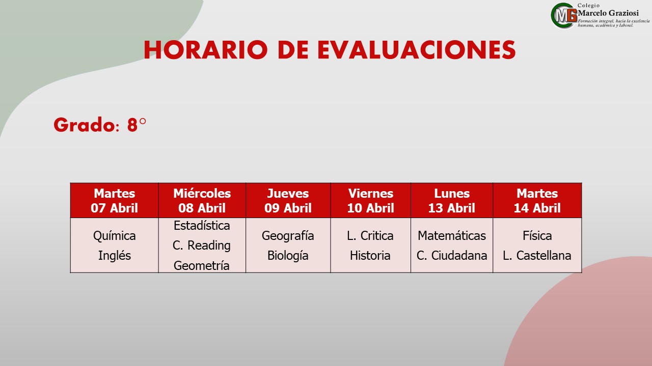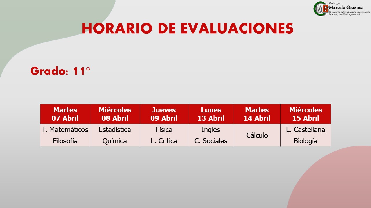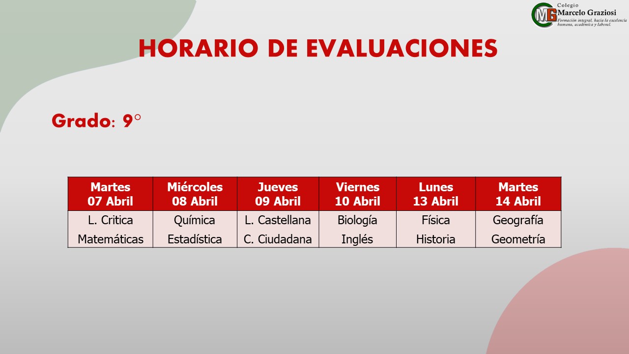 Encuentre aqui los horarios de evaluaciones segun su grado para el primer periodo del 2026.