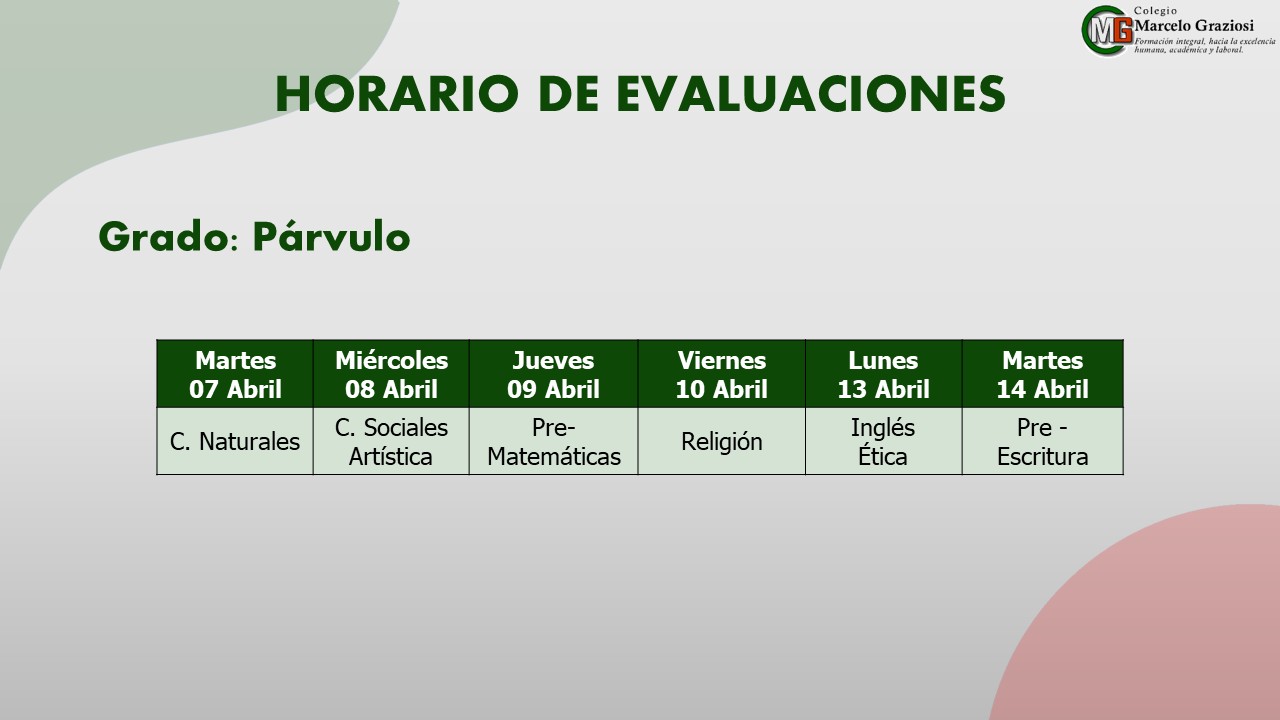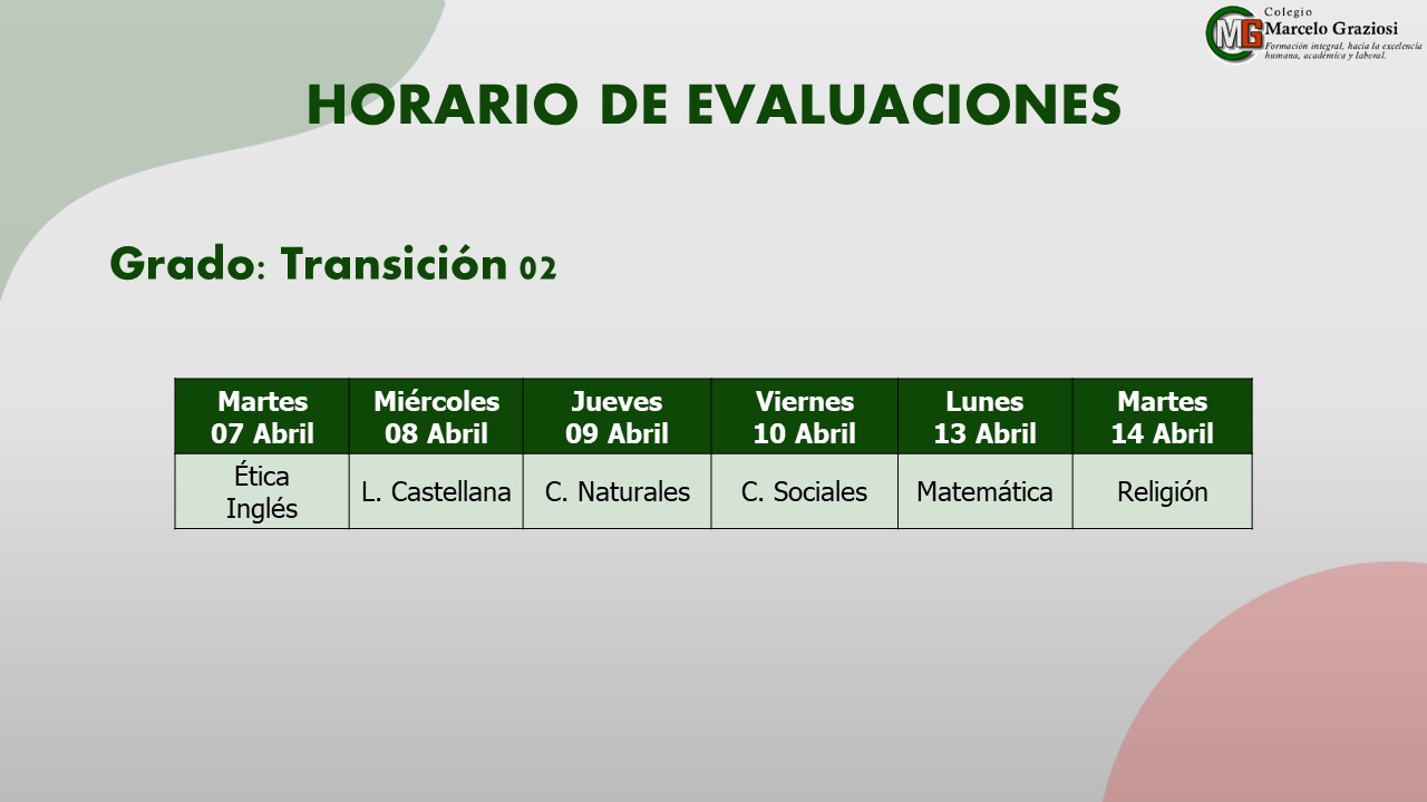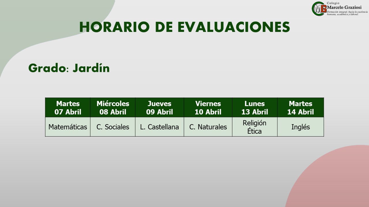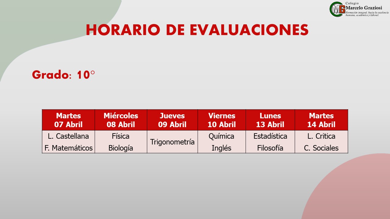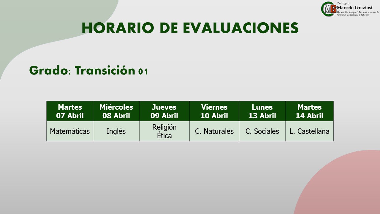 Encuentre aqui los horarios de evaluaciones segun su grado para el primer periodo del 2026.